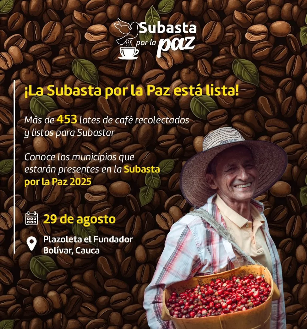 La Subasta por la Paz 2025, se encuentra a la vuelta de la esquina, este evento esta programado para este 29 de agosto en el municipio de Bolívar. La Gobernación del Cauca lidera esta iniciativa que reunirá más de 453 lotes de café, ofreciendo un escenario único para visibilizar la excelencia y la diversidad del grano producido en la región. El encuentro busca no solo promover la calidad, sino también fortalecer los lazos comerciales y destacar el trabajo de los caficultores locales.