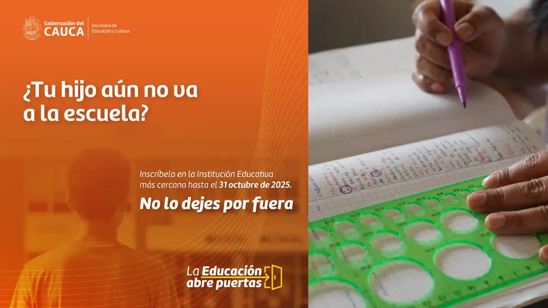 La Secretaría de Educación y Cultura del Cauca, hizo un llamado a la comunidad, en especial a padres se familia, para informar que las inscripciones de estudiantes nuevos en las Instituciones Educativas de carácter oficial del departamento se encuentran abiertas y estarán disponibles hasta el próximo 31 de octubre de 2025. El proceso busca garantizar el derecho a la educación de todos los niños, niñas, adolescentes y jóvenes que aspiran a ingresar por primera vez al sistema educativo o que desean cambiarse a una institución pública.