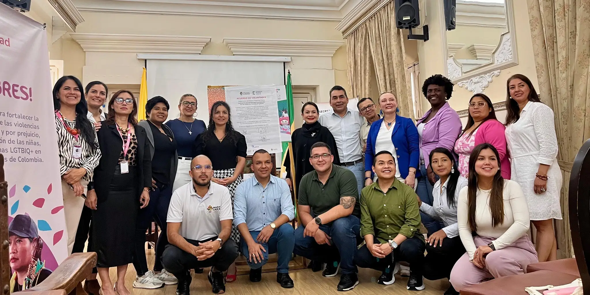La Secretaría de la Mujer del Cauca ha participado activamente en el Acuerdo de Voluntades para dar inicio al proyecto “Libres”. Esta iniciativa, de gran alcance regional, se enfoca en la implementación de estrategias robustas para el fortalecimiento de iniciativas productivas y la promoción de la autonomía económica de mujeres y personas LGBTIQ+ en cuatro municipios priorizados del departamento: Buenos Aires, Suárez, Puerto Tejada y Corinto.